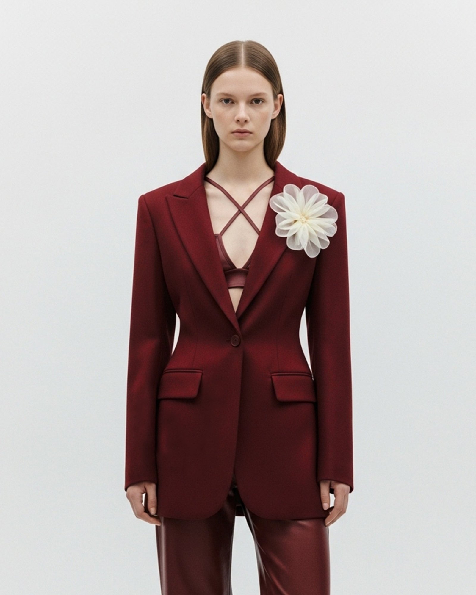 Single Button Floral Accent Blazer – Burgundy